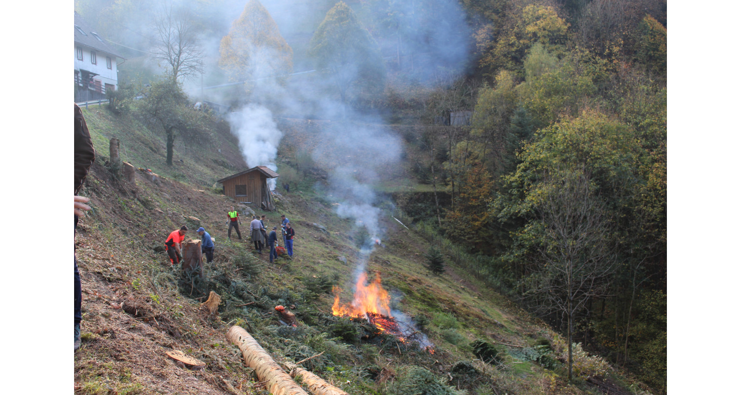 Bereits im Vorfeld mussten einige große Bäume entfernt werden. Der Lierbacher Ortsvorstehen Matthias Fischer und Michael Sauter vom Ortenauer Amt für Waldwirtschaft planten und koordinierten diese Arbeiten.