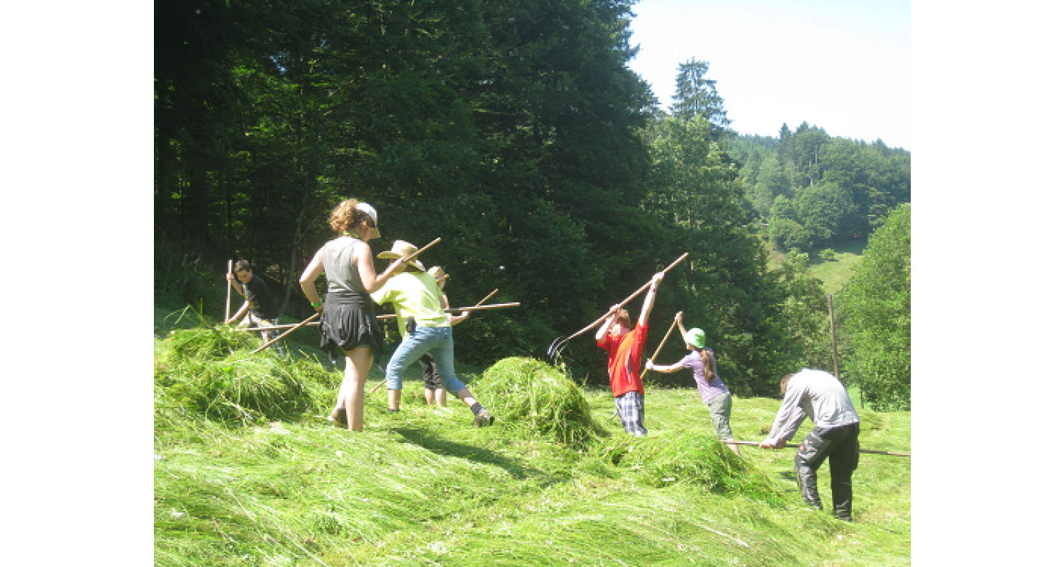 "Lieber auf den Matten als Mathe" – unter diesem Motto tauschte die 7. Klasse der Brandenkopf-Schule in Oberharmersbach bem dritten Ortenauer Landschaftspflegetag das Pauken im Klassenzimmer gegen die frischen Luft im Zuwälder Tal. Angeleitet durch Revierleiter Hans Lehmann und LEV-Geschäftsführerin Regina Ostermann halfen die Siebtklässler drei Tage lang tatkräftig bei der Heugewinnung auf einer gemeindeeigenen Wiese mit.