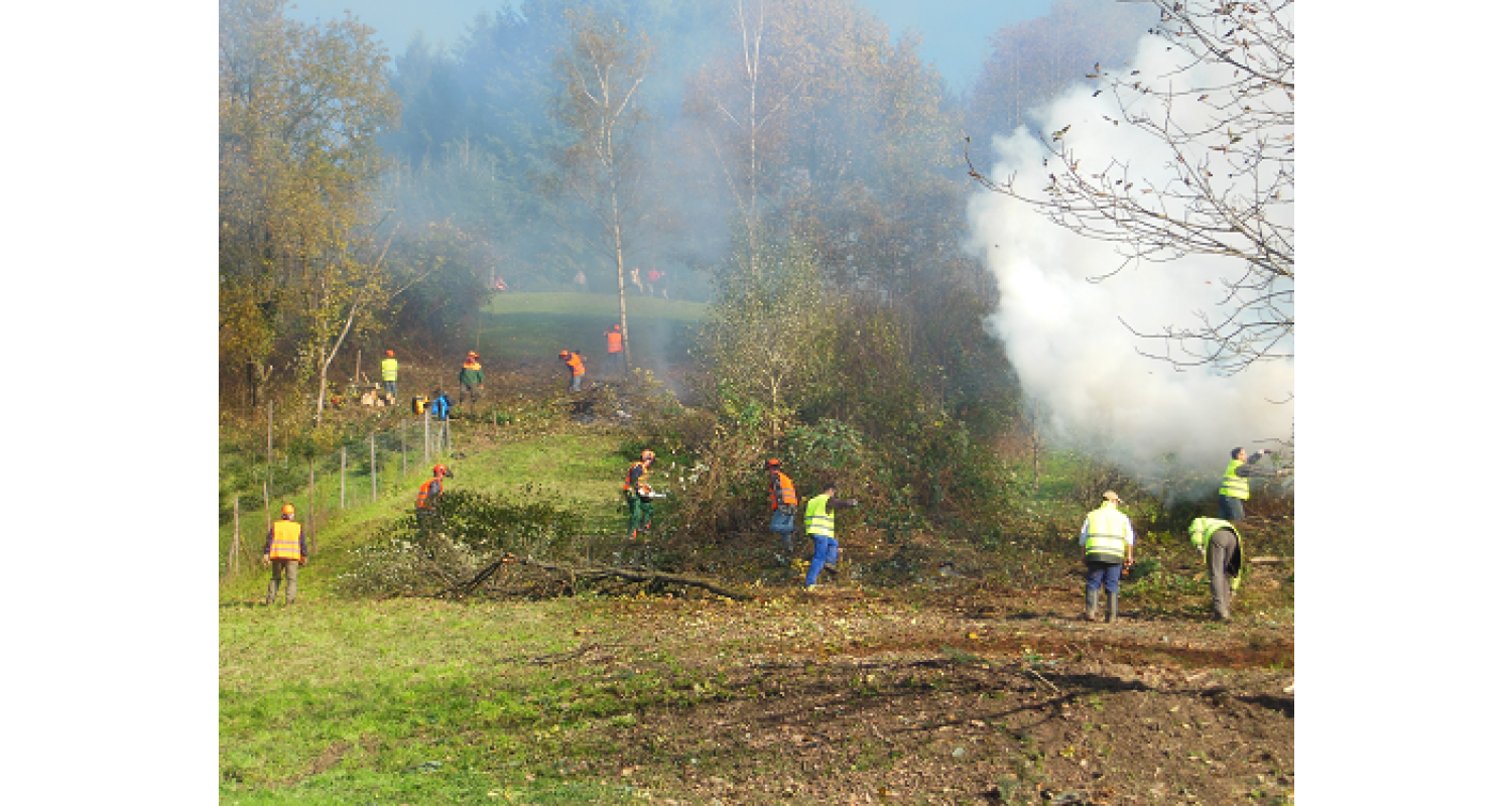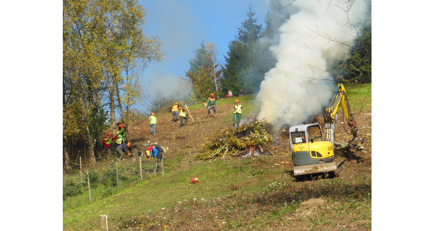 Unter Anleitung der Forstexperten Stefan Bruder und Norbert Wussler pflegten jeweils rund 60 ehrenamtliche Helferinnen und Helfer verbuschte und verwilderte Flächen in den Gewannen Hintere Lehen, Wildegraben, Hudelacker und Schlauchberg. Zum Einsatz kam unter anderem eine Spezialmaschine mit deren Hilfe Brombeersträucher auf unzugänglichem Gelände entfernt wurden.