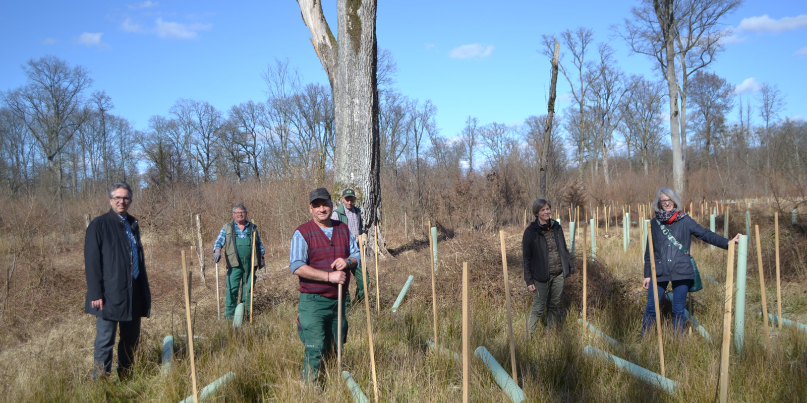 „Wir verwenden Stieleichen, die wir in der Pflanzschule aus im eigenen Wald gesammelten Eicheln herangezogen haben“, berichtet Schappacher-Peter stolz. Weitere gegen den Klimawandel ähnlich elastische Mischbaumarten wie Hainbuche, Winterlinde, Flatterulme, Feldahorn und die hochgradig gefährdete Schwarzpappel werden ebenfalls eine neue Heimat im Korker Wald finden.