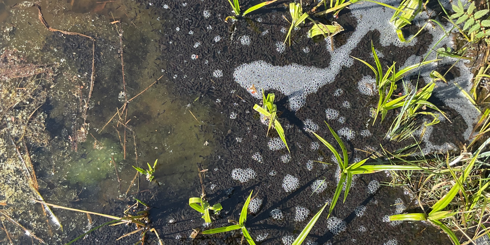 Die Gemeinde Seelbach arbeitete zusammen mit dem LEV die Antragstellung und das Maßnahmenpaket aus. Dazu zählte neben einem neuen Durchlass für den Litschenbach u.a. auch die Anlage des kleinen rund 80 qm großen und knapp einen halben Meter tiefen Tümpels. Jetzt haben ihn Grasfrösche in Beschlag genommen.