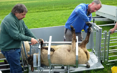 Ein mobiler Pflegestand für Schafe wurde auf dem Gelände der Schäferei Bischler-Braun...